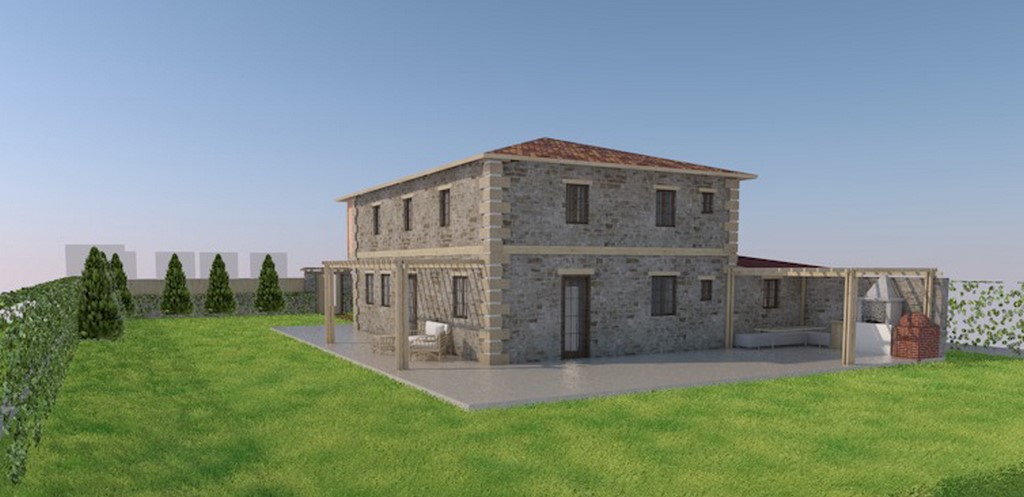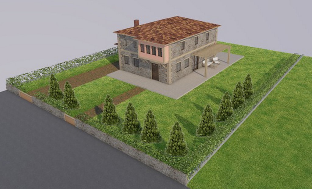 Στο εν λόγω οικόπεδο πρόκειται να κατασκευαστεί ισόγεια κατοικία με εσωτερικό εξώστη (πατάρι), κλειστή θέση στάθμευσης και περίφραξη, καθώς και 4 μικρότερες κατοικίες με πατάρι και χώρο υποδοχής όλα προς ενοικίαση.