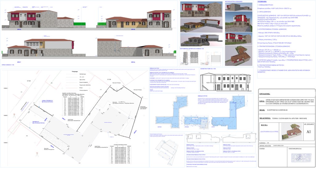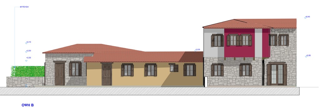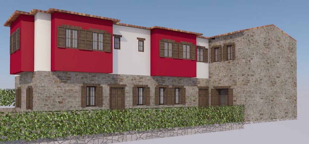 Η μελέτη αφορά τη δομοστατική αποκατάσταση της λιθοδομής των υπαρχόντων κτισμάτων και την προσθήκη καθ’ ύψος ενός ορόφου στο τμήμα με κατεύθυνση ΒΔ-ΝΔ καθώς και ενός τμήματος κατ’ επέκταση του ΒΑ τμήματος του δεύτερου κτίσματος.