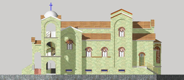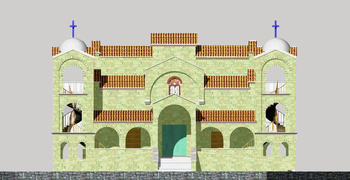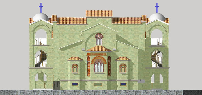 Η μακροχρόνια εμπειρία μας στη Ναοδομία μας επέτρεψε τη σύνθεση με επιτυχία του Ναού χρησιμοποιόντας στοιχεία από την παραδοσιακή αρχιτεκτονική Ιερών Χώρων. Οι αρμονικές αναλογίες τόσο στην κάτοψη όσο στην ανάπτυξη καθ'ύψος του κτηρίου προσδίδουν ιδιαίτερη χάρη και μεγαλοπρέπεια.